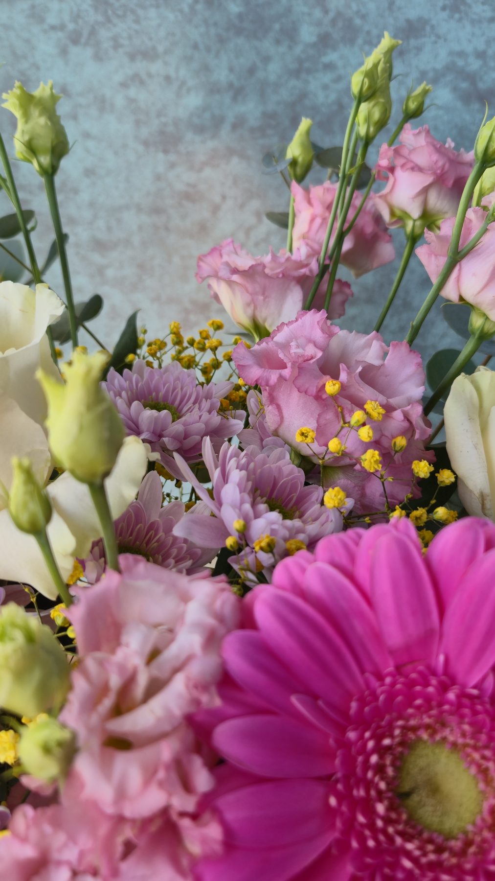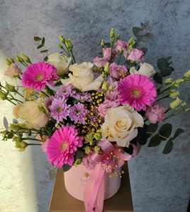 Duży flower box z kwiatów mieszanych , sezonowych ( dostępnych w danym dniu w naszej kwiaciarnia) w pastelowych odcieniach